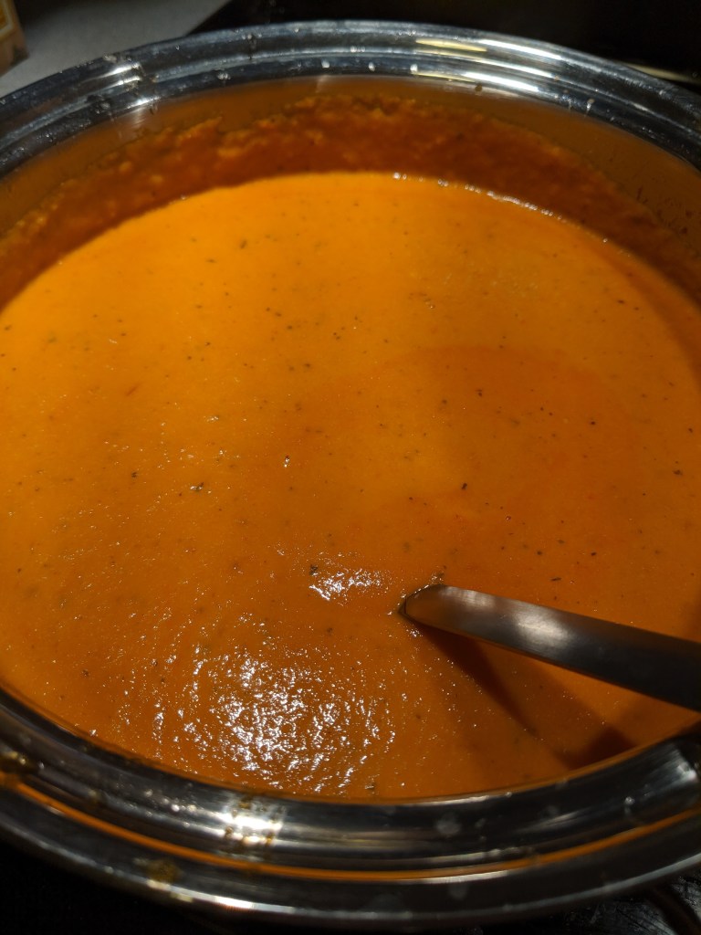 - After your soup is done simmering take the pot off the heat, and fish out your thyme and oregano sprigs before blending the soup. You can to this multiple ways, though I find that it’s quicker and easier to use an immersion blender. If you just have a blender you’ll have to do it in batches, while being a little more cautious due to heat build up in the blender.