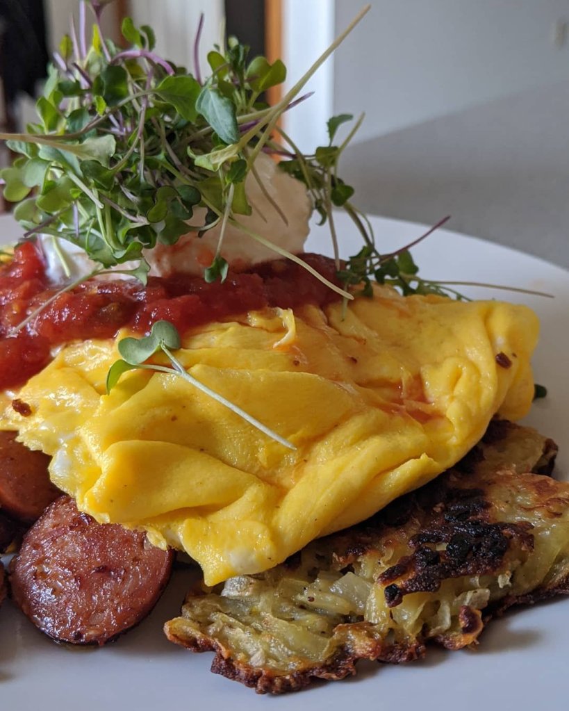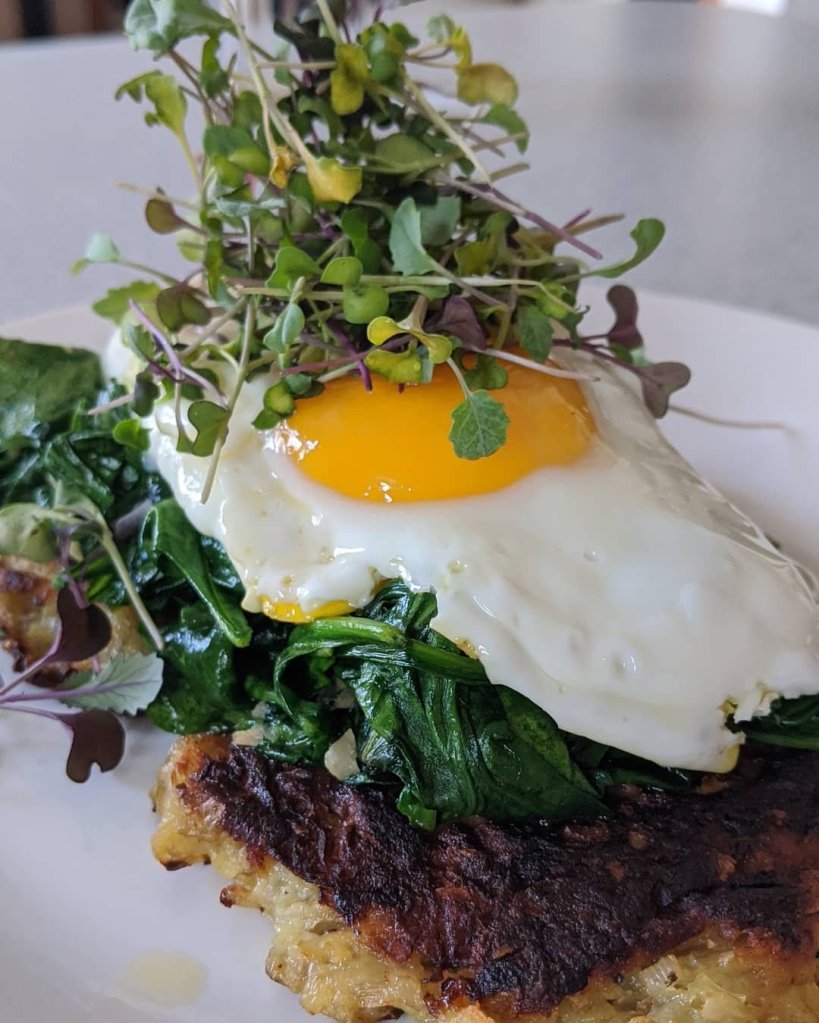 I love latkes, it’s the one thing I look for on a menu at every breakfast/brunch place I go to. So while home, I made my own and they’re so simple to make. Once you get them figured out you can give them any flavor you want. For this breakfast, I added some sautéed spinach with confit garlic (or what ever you have on hand), topped with a sunny side egg and some micro greens. You can essentially use any greens you want, but during this time it’s a good idea to get your fruits and veggies in to keep your immune system at its peak.