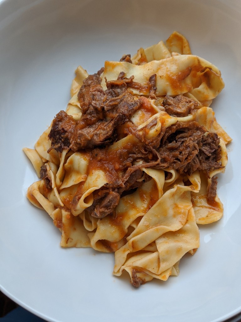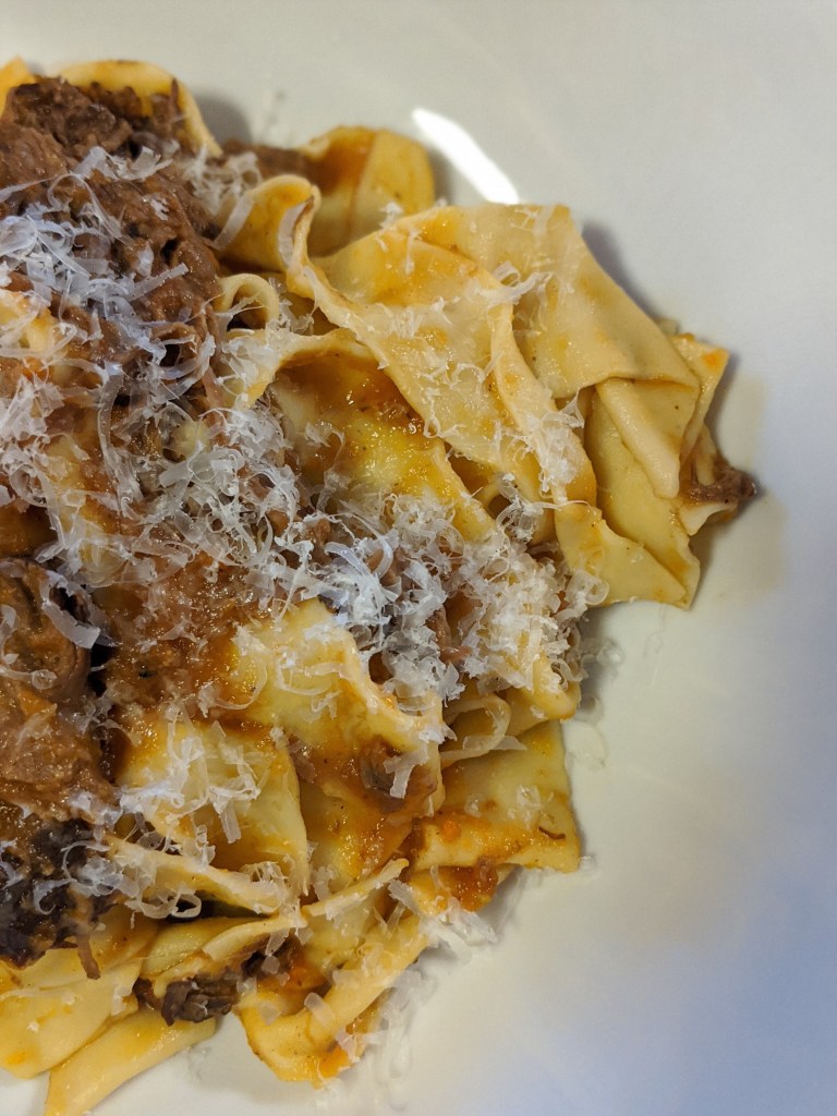 When making you’re own pappardelle use a basic egg pasta dough such as: